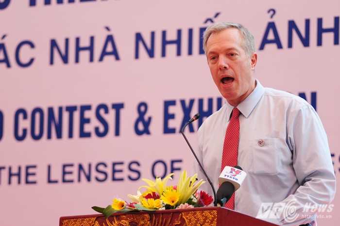 | Đại sứ Ted Osius chia sẻ trong triển lãm 'Quan hệ Việt - Mỹ và nước Mỹ qua ống kính các nhiếp ảnh gia Việt Nam' - Ảnh: Tùng Đinh |