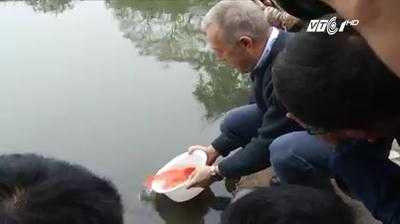 Sáng nay (18/1), Đại sứ Mỹ Ted Osius đã thả cá chép tiễn ông Công ông Táo và đi chợ hoa sắm đào chơi Tết theo phong tục truyền thống của người Việt, ông còn gửi lời chúc bằng tiếng Việt đến tất cả mọi người.