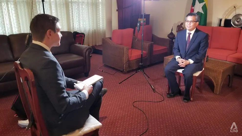 Đại sứ Myanmar tại Liên Hợp Quốc Kyaw Moe Tun trong cuộc phỏng vấn tại New York hôm 12/3. (Ảnh: Channel News Asia)