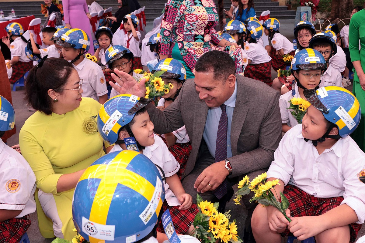 Đại sứ Thụy Điển Johan Ndisi cho biết mũ bảo hiểm là biện pháp bảo vệ đơn giản nhưng rất quan trọng và hiệu quả cho cả trẻ em và người lớn.