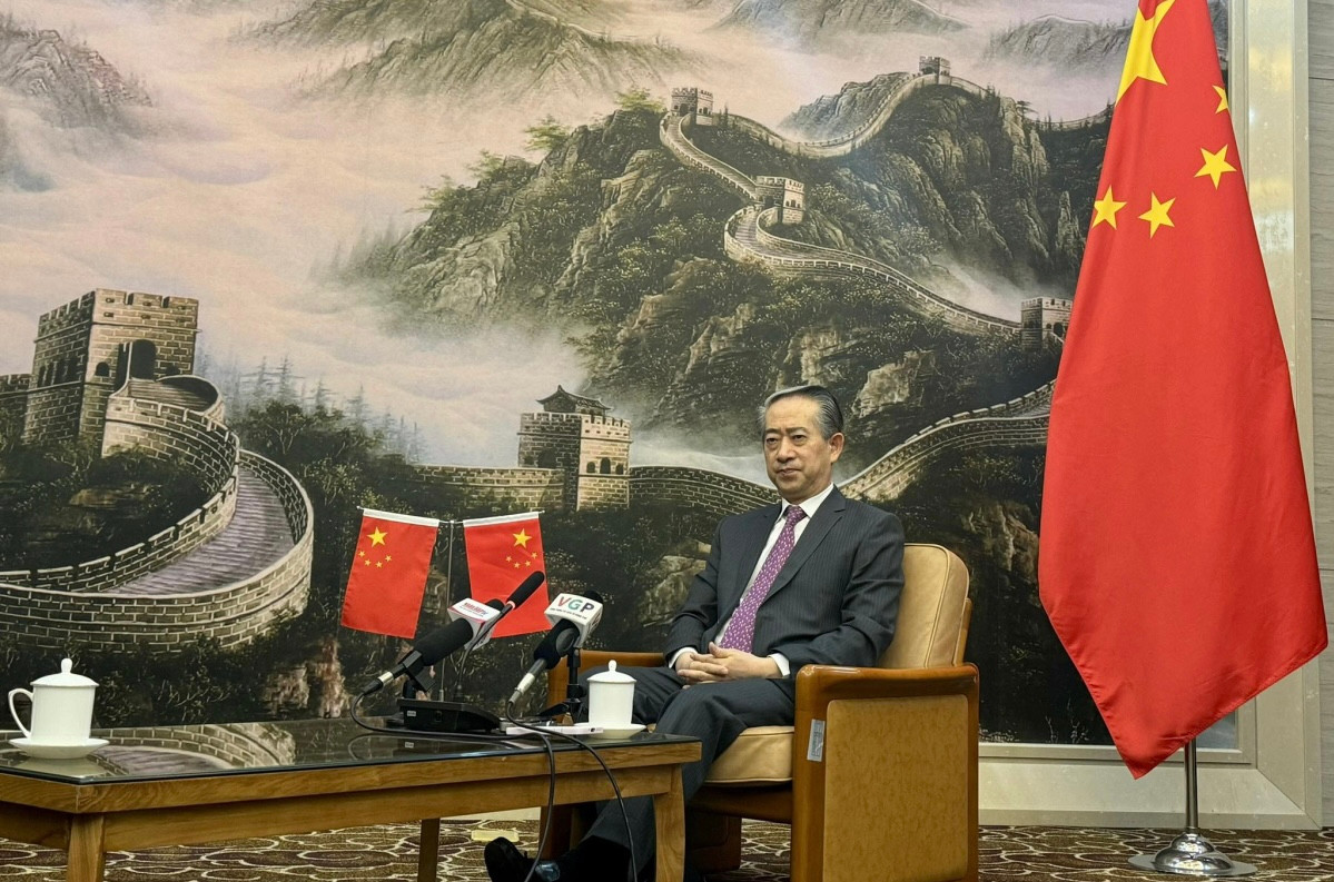 Đại sứ Trung Quốc tại Việt Nam Hùng Ba trả lời phỏng vấn báo chí.