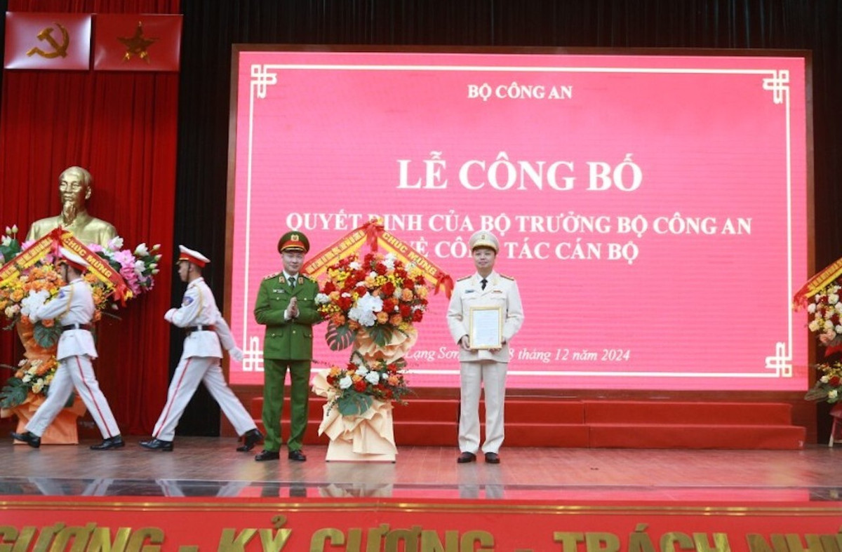 Sáng 28/12, Công an tỉnh Lạng Sơn tổ chức lễ công bố quyết định của Bộ trưởng Bộ Công an về việc điều động, bổ nhiệm Đại tá Nguyễn Tiến Trung, Cục phó Cục An ninh kinh tế (Bộ Công an), giữ chức vụ Giám đốc Công an tỉnh Lạng Sơn từ ngày 1/1/2025.