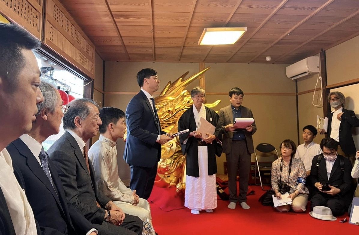 Bức Rèm thêu VOV tặng cho Hiệp hội bảo tồn Ofunehoko thành phố Shijo, Kyoto