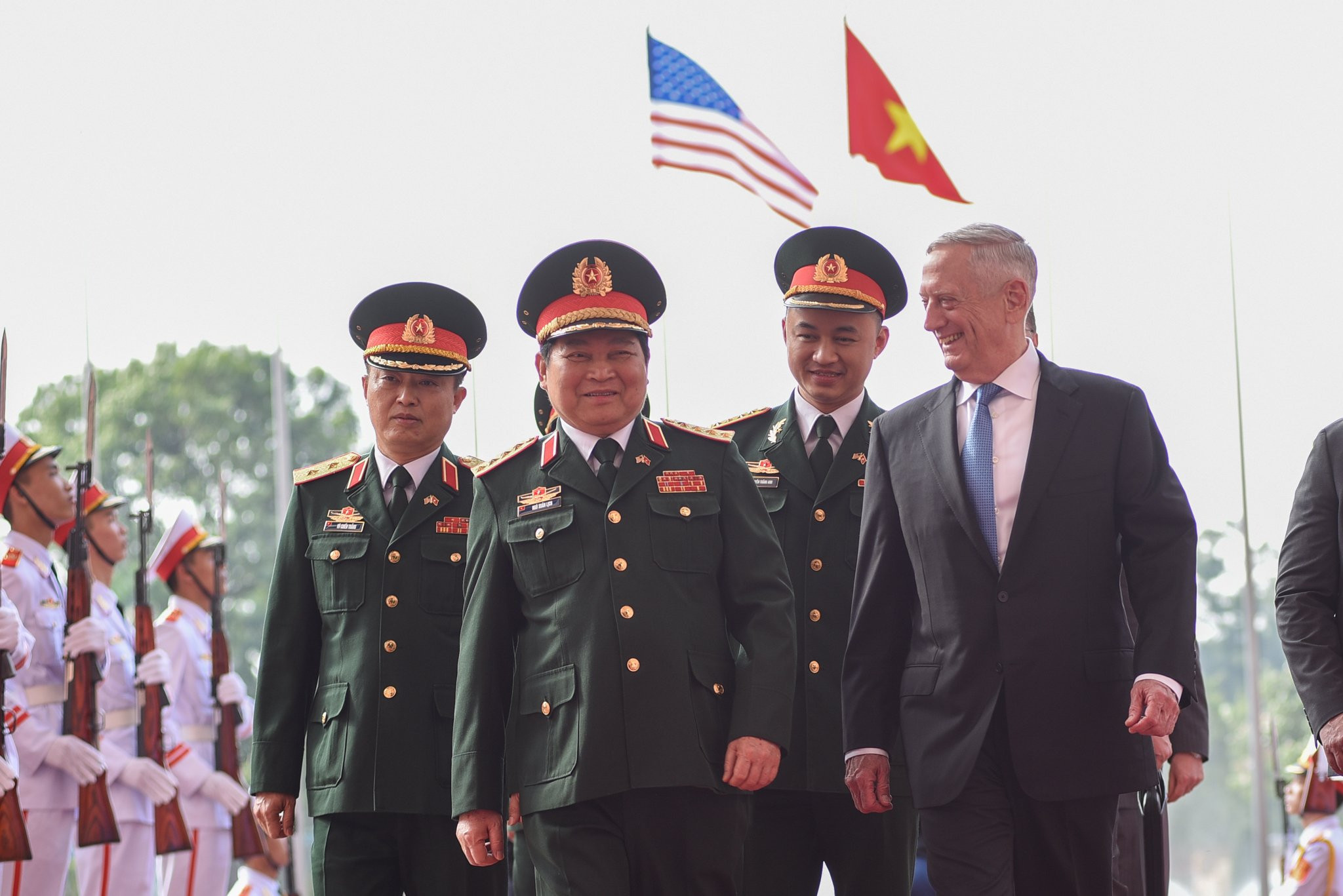 Bộ trưởng James Mattis duyệt đội danh dự Quân đội nhân dân Việt Nam. (Ảnh: Tùng Đinh)