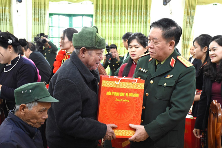 Dịp này, thay mặt Quân ủy Trung ương, Bộ Quốc phòng, Đại tướng Nguyễn Trọng Nghĩa trao 30 suất quà gửi tặng các đối tượng chính sách tại xã Tam Kim.