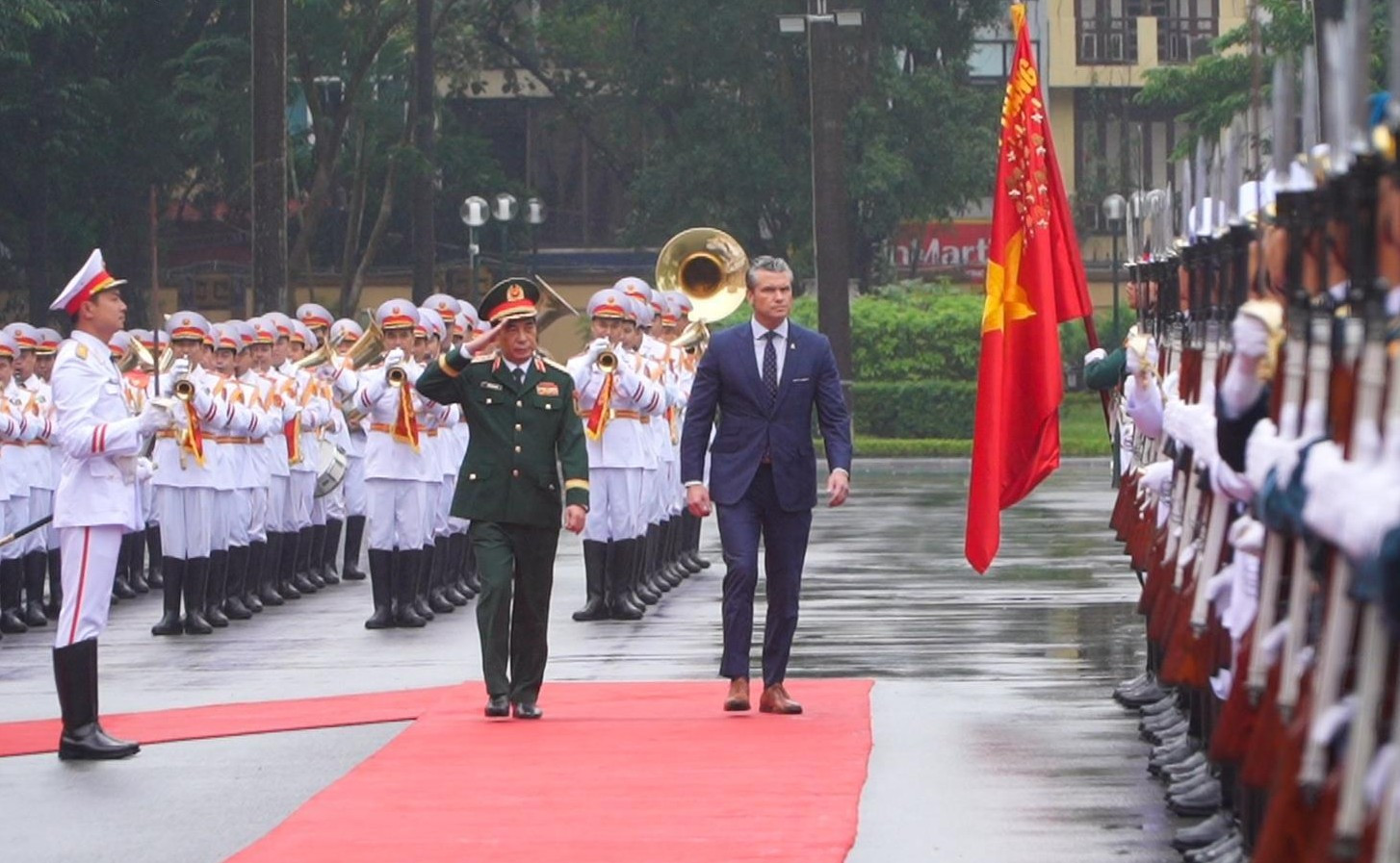 Chiều 2/11, tại trụ sở Bộ Quốc phòng, Đại tướng Phan Văn Giang, Bộ trưởng Bộ Quốc phòng Việt Nam chủ trì lễ đón chính thức và hội đàm với ngài Pete Hegseth - Bộ trưởng Bộ Chiến tranh Mỹ (trước đây là Bộ Quốc phòng).