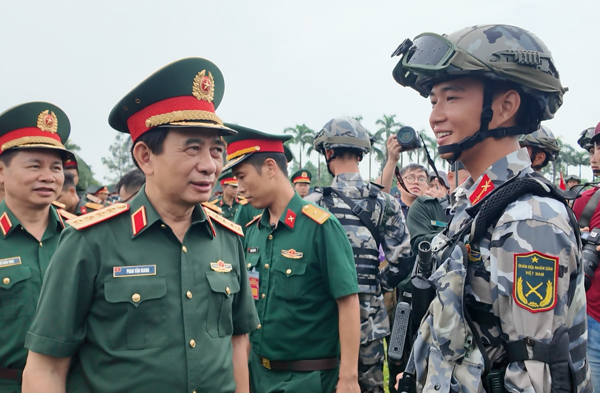 Kết thúc hợp luyện 16/8, Đại tướng Phan Văn Giang thăm các khối diễu binh và kể lại kỷ niệm tự hào của mình về lần diễu binh năm 1985 trên Quảng trường Ba Đình.