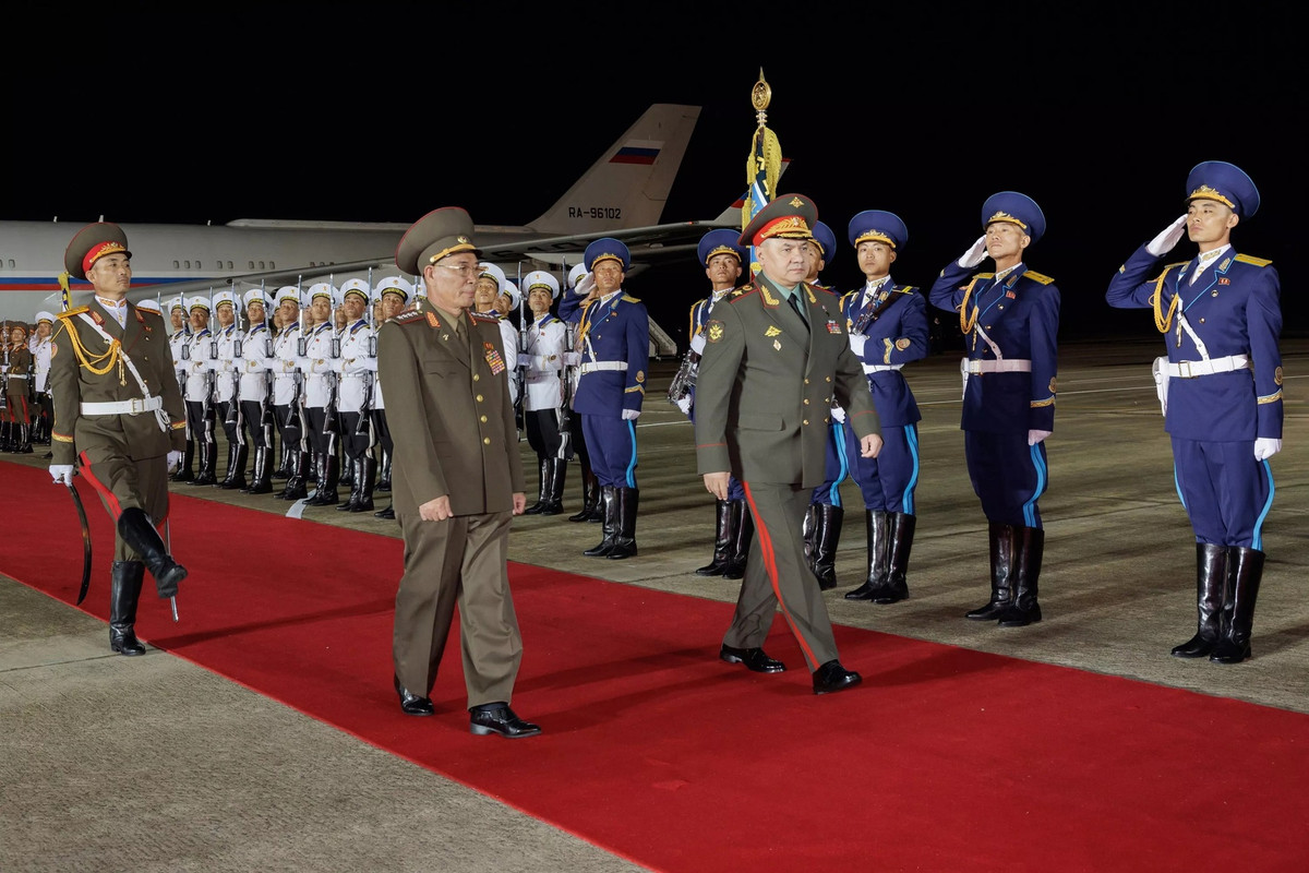 “Lễ đón chính thức phái đoàn Nga với sự tham gia của đội danh dự Quân đội Nhân dân Triều Tiên đã diễn ra tại sân bay quốc tế Sunan ở Bình Nhưỡng. Bộ trưởng Quốc phòng Triều Tiên Kang Sun-nam đã chào đón người đứng đầu Bộ Quốc phòng Nga tại đường băng", thông báo có đoạn.