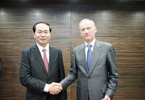 Bộ trưởng Trần Đại Quang và Đại tướng, Thư ký Hội đồng An ninh Liên bang Nga, Pát-tru-sép Nhi-cô-lai Plat-tô-nô-vich