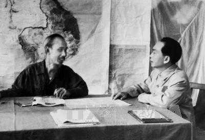 | Đại tướng Võ Nguyên Giáp báo cáo tình hình chiến dịch Điện Biên Phủ với Chủ tịch Hồ Chí Minh |