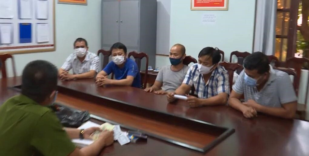 Nhóm người bị bắt quả tang vì tham gia đánh bạc tại cơ quan công an.