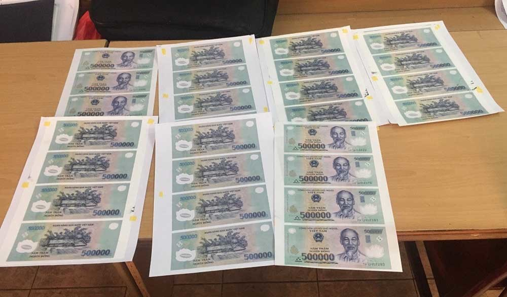 Theo cáo trạng, do không có nghề nghiệp ổn định, đầu tháng 7/2018, Nguyễn Đức Huy (SN 1988, trú tại TP.HCM, có 2 tiền án về tội “Cướp giật tài sản”) vào mạng học cách làm tiền giả rồi mua máy in màu và các trang thiết bị khác về sản xuất tiền giả, thuê Nguyễn Ngọc Ngân (SN 2002, trú TP.HCM) phụ giúp.