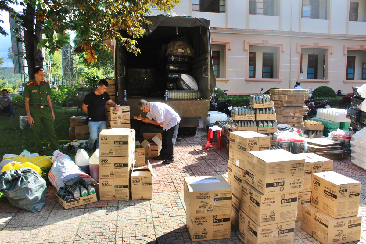 Ngày 19/10, Phòng Cảnh sát Kinh tế Công an tỉnh phối hợp với Phòng Cảnh sát Giao thông Công an tỉnh Đắk Nông tiến hành kiểm tra, phát hiện, lập biên bản tạm giữ 528 chai nhớt giả được chở trên xe tải BKS: 93H-03681 do Định cầm lái.