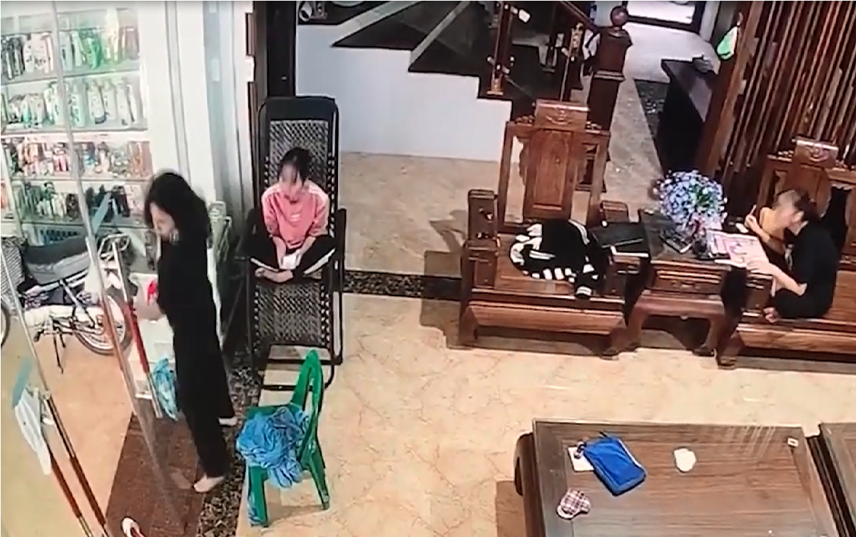 Mải nhìn chị, bé trai tông xe vào tường ngã lăn