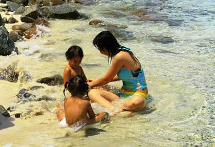| Hãy thoa kem chống nắng cho trẻ nếu đi biển |