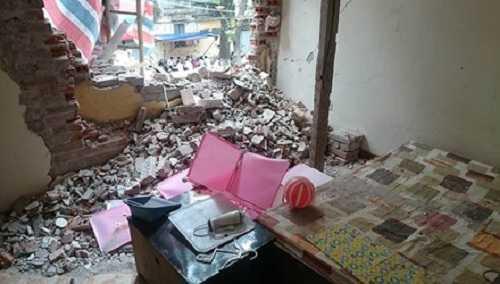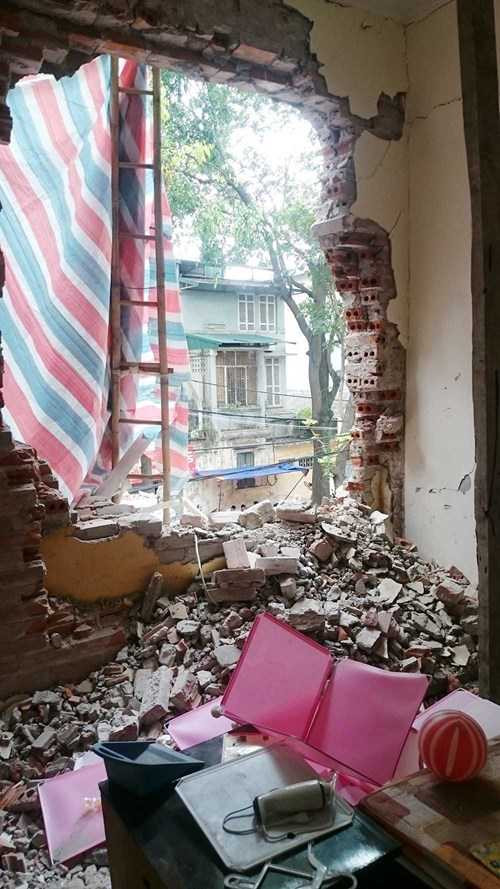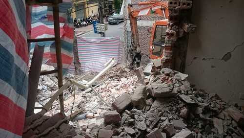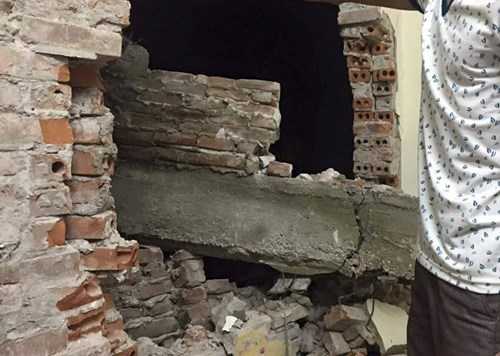 Nửa đêm ngày 28/8, khi các công nhân đang phá dỡ ngôi nhà, bất ngờ tấm dầm bê tông nặng hàng tấn lao vào tầng 3 của ngôi nhà bên cạnh làm thủng một lỗ rộng, gạch đá vương vãi khắp phòng.