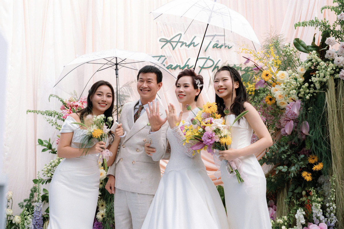 Trời mưa to nhưng đám cưới vẫn rất thành công, với sự góp mặt của nhiều người thân.
