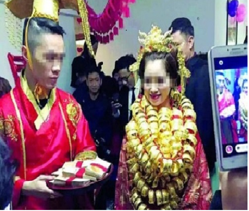 “Đám cưới vàng” ở Trung Quốc vốn đã không phải là một điều gì đó quá xa lạ với nhiều người nhưng hiếm có lễ vu quy nào lại đầu tư về khoản trang phục và phụ kiện như lễ cưới ở tỉnh Quảng Đông này.