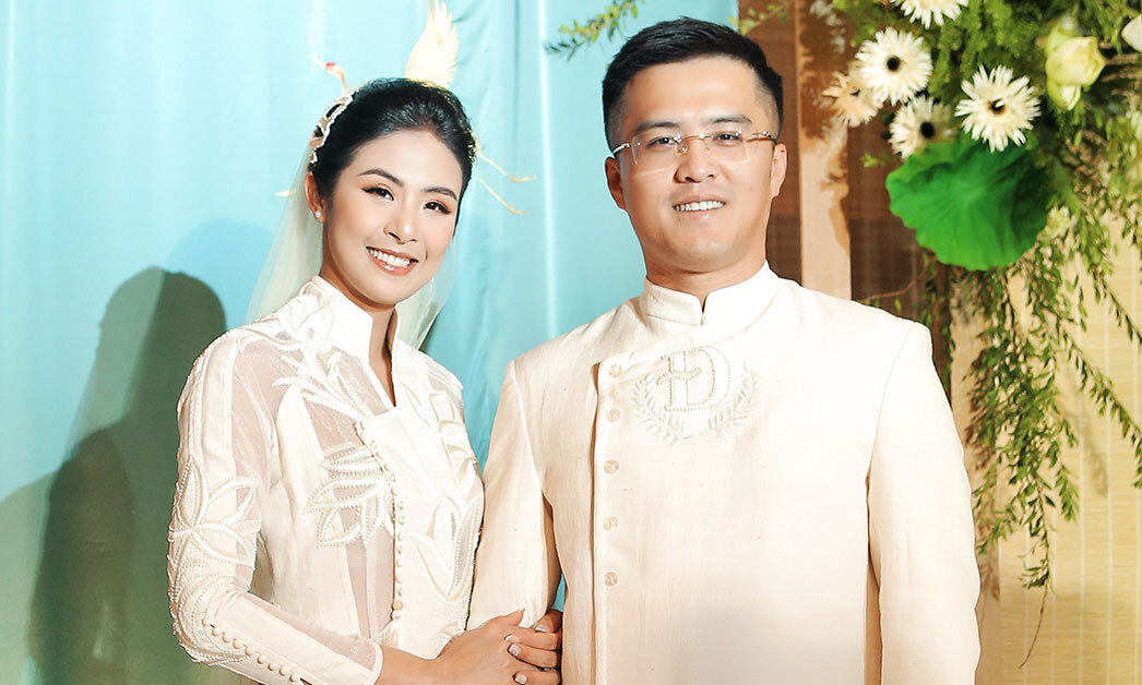 Ông xã chăm chút ân cần cho Ngọc Hân trước giờ tổ chức hôn lễ. Tiệc cưới của cặp đôi có sự góp mặt của hơn 800 khách mời. Ngọc Hân từng chia sẻ người bạn đời không phải đại gia hay thiếu gia nhưng lại sống tình cảm, chu đáo và hết mực yêu thương cô.