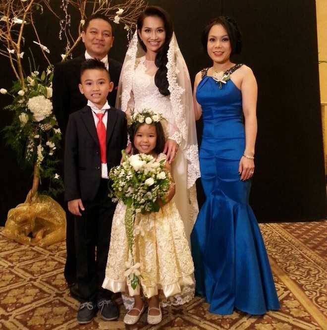 Cô dâu được mẹ đẻ và bạn bè thân thiết như siêu mẫu Kim Dung, chuyên gia trang điểm Huỳnh Lợi chăm sóc tỉ mỉ trong ngày trọng đại. Trong tiệc cưới với tông màu trắng chủ đạo, cô dâu chú rể sau khi làm nghi thức vui vẻ khuấy động không khí bằng những màn nhảy khiêu vũ và trò chơi vui nhộn với 100 khách mời.