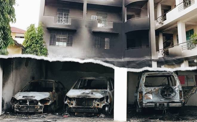 Đám đông gây rối đốt xe tại PCCC Phan Rí gây thiệt hại nhiều tỷ đồng.