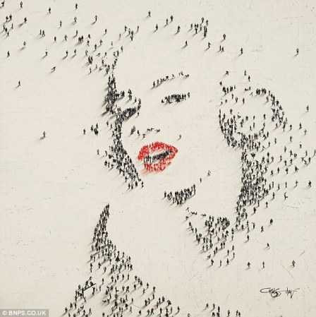 | Đám đông xếp hình tạo thành gương mặt Marilyn Monroe |
