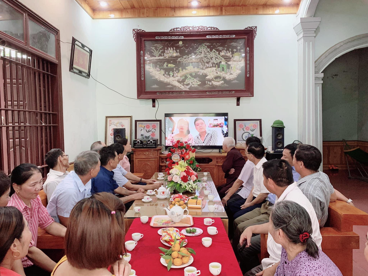 Hình ảnh đám hỏi trực tuyến của cặp đôi xứ Nghệ nhận được sự chú ý của dân mạng. (Ảnh chụp màn hình)