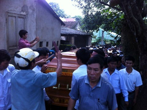 Do trục trặc trên đường đi, linh cữu anh Hiệp đã về muộn hơn dự kiến khoảng hơn 3 giờ đồng hồ. Khi chiếc ô tô chở linh cữu chầm chậm theo con đường đất vào làng, mọi người đứng nhìn như chết lặng.