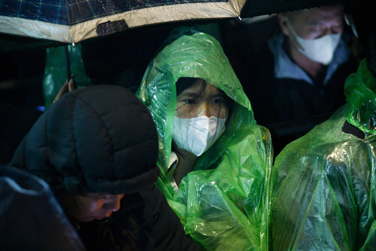 Dù thời tiết rất lạnh, mưa dày hạt nhưng tại khu vực bên ngoài đền, hàng vạn người vẫn kiên trì đứng chờ dự lễ khai ấn.