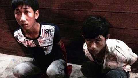 | Hai thanh niên bị các "hiệp sĩ" bắt giữ. Ảnh: Thanh Hải |