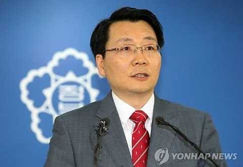 | Phát ngôn viên Bộ Thống nhất của Hàn Quốc Kim Hyung-suk nói tại một cuộc họp báo |