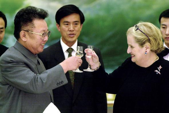 Nhà lãnh đạo Triều Tiên quá cố Kim Jong-il cùng cựu Ngoại trưởng Mỹ Madeleine Albright năm 2000. (Ảnh: Reuters)