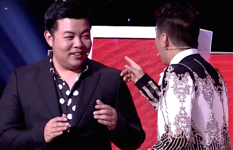 Đàm Vĩnh Hưng liền chỉ thẳng mặt Quang Lê và mắng: "Giờ anh mới phát hiện ra em là người trở mặt rất giỏi" khiến Quang Lê lúng túng giải thích điều anh nói không mang ý nghĩa như vậy. Nam ca sĩ còn "cầu cứu" Lệ Quyên nói đỡ giúp mình.
