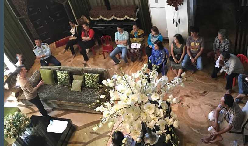 Đàm Vĩnh Hưng (phía góc trái) và những chủ nợ của mẹ mình.