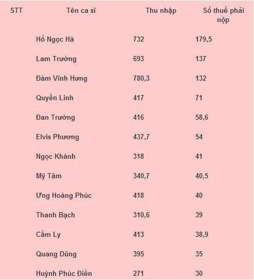 Chỉ có một vài lần, những thông tin nhạy cảm này được tiết lộ và vô tình cho biết được những cái tên đóng thuế cao nhất showbiz Việt.