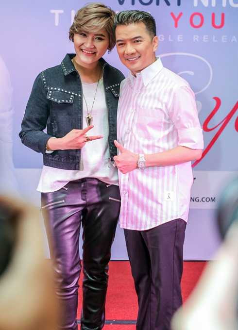 | Đàm Vĩnh Hưng tới tham dự buổi ra mắt sản phẩm âm nhạc của học trò Vicky Nhung. Khác với những lần xuất hiện trước đây, lần này "ông hoàng nhạc pop" mặc áo sơ mi, quần âu đơn giản. Nhiều người cho rằng, với trang phục này, giọng ca "Bình minh sẽ mang em đi" có vẻ kém sang, dù trên tay đeo đồng hồ kim cương tiền tỷ. |