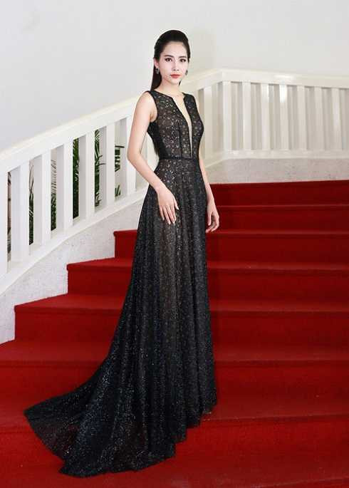 | Hoa Khôi Nam Em khoe vóc dáng mảnh mai với đầm đuôi cá. |