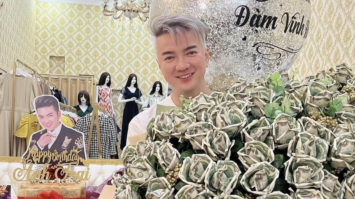 Bó hoa làm bằng USD của người hâm mộ gửi tặng sinh nhật Đàm Vĩnh Hưng