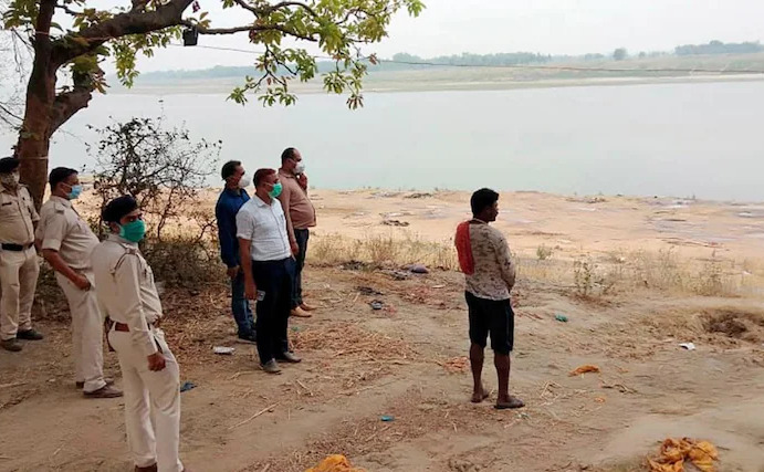 Các thi thể, hầu hết đang ở giai đoạn phân hủy được chôn vùi trong cát ở khu vực làng Buksar, huyện Unnao, bang Uttar Pradesh.