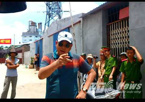 | Người đàn ông đeo kính đen là một trong những đối tượng có hành vi cản trở phóng viên tác nghiệp tại hiện trường - Ảnh MK |