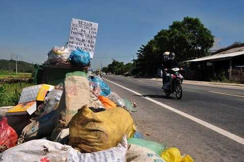 | Vì người dân chặn xe chở rác không cho vào khu xử lý nên rác thải sinh hoạt tràn ngập ở các khu dân cư gây ô nhiễm trầm trọng |