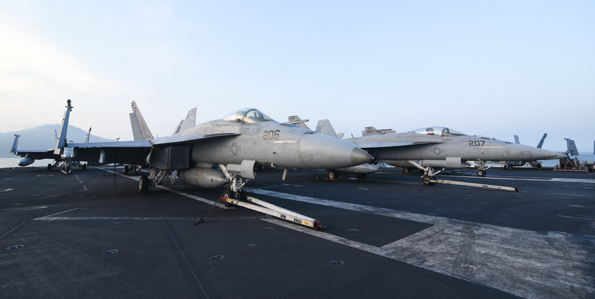 Chiếc F/A-18 mang số hiệu 206 trên tàu USS Carl Vinson. (Ảnh: Tùng Đinh)