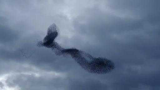 Đàn chim sáo đá hàng ngàn con tập trung thành những hình thù kì dị ở thành phố Utretch, Hà Lan.