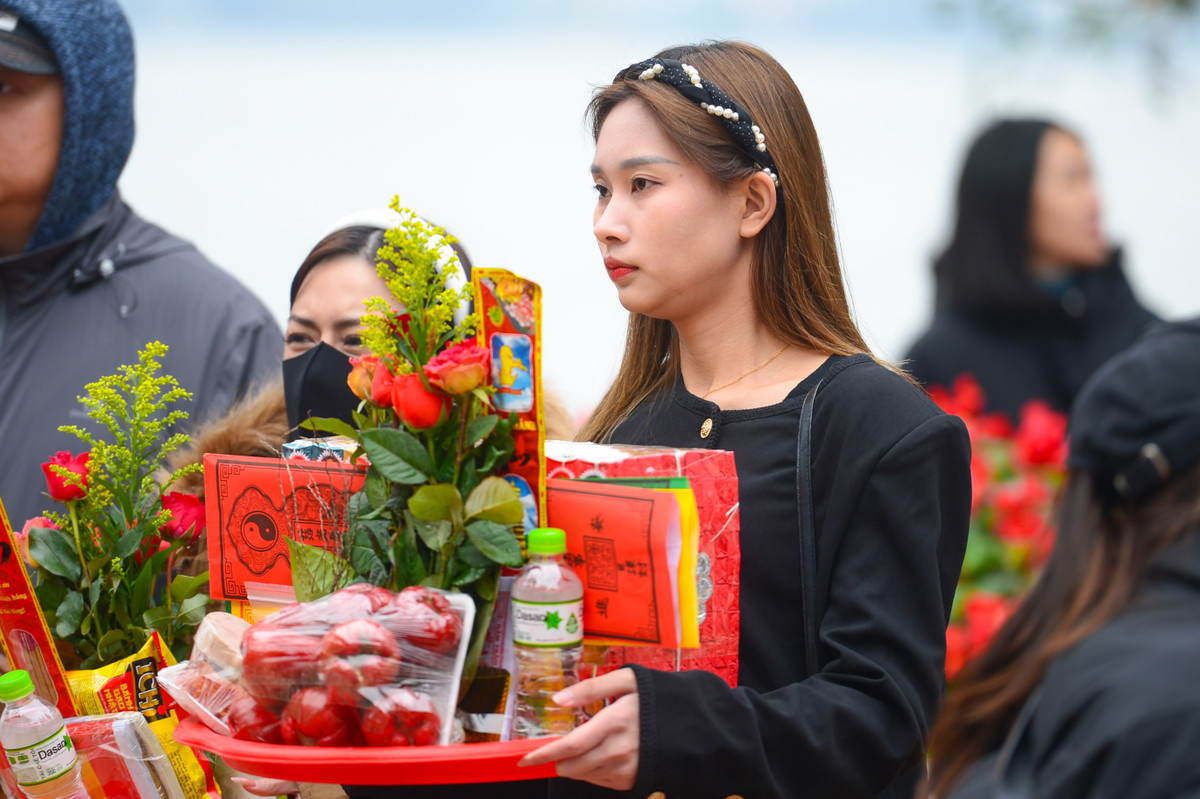 Trưa 25/1, rất nhiều người dân tới Phủ Tây Hồ (quận Tây Hồ, Hà Nội) dâng lễ, cầu may trong ngày rằm tháng Chạp.