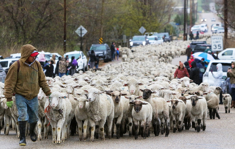 Cảnh tượng 2.500 con cừu tràn ra một con đường cao tốc ở TP Eagle thuộc bang Idaho, Mỹ khiến nhiều người ngạc nhiên.