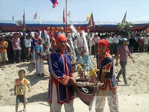 | Mô hình thuyền cùng hình nhân thế mạng được các trai tráng trên đảo thả xuống biển để tưởng niệm đội hùng binh Hoàng Sa thuở xưa đi mở cõi.. |