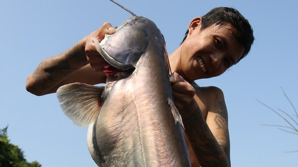 "Cá này chắc chắn là tôi đem về nhà ăn rồi. Một năm mới có một lần mà", người đàn ông vui mừng nói.