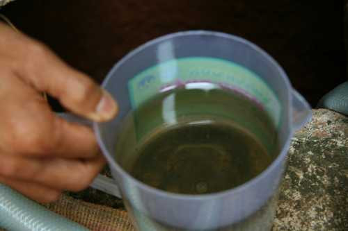 | Một giếng ở nhà dân gần trạm xăng Hồng Hạng bị xăng tràn vào |