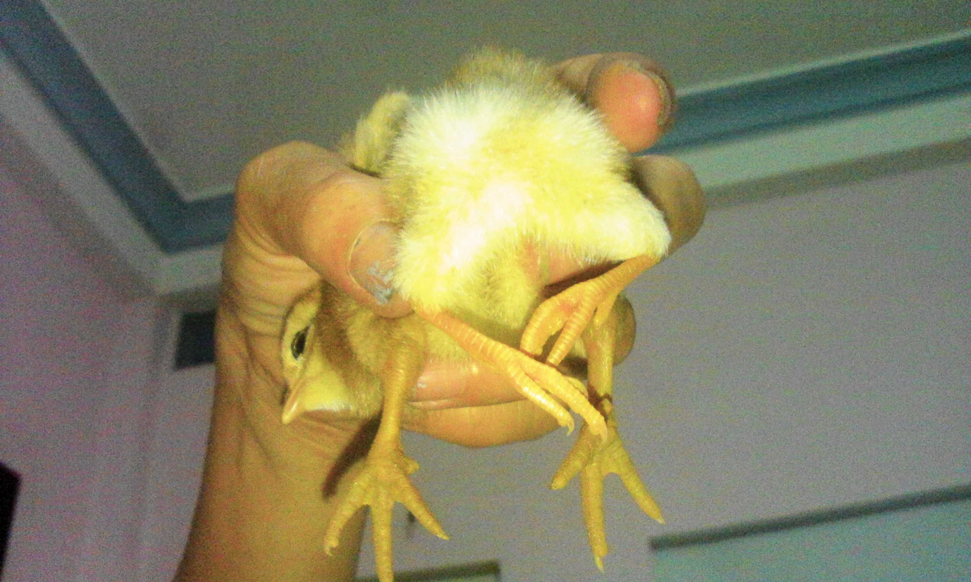 Từ khi nở, con gà con này vẫn khỏe mạnh và hiện phát triển bình thường.
