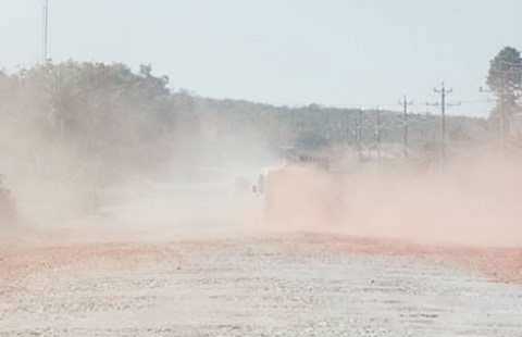 | Bụi tung mịt trời khi một chiếc xe chạy qua. |